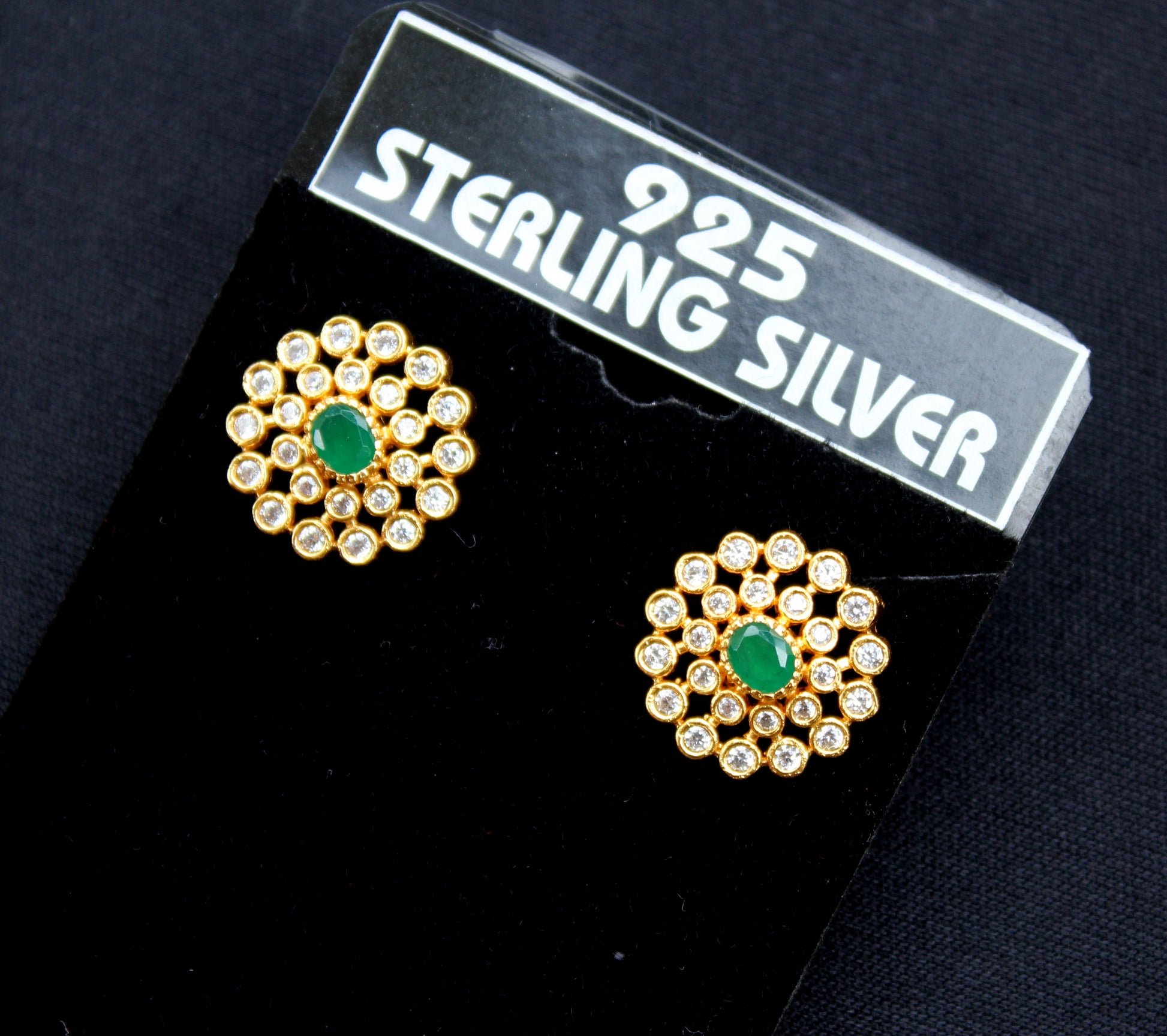 - Elegant 925 Sterling Silver Emerald Stud Earrings, handcrafted by Beaded Treasures in Bengaluru.