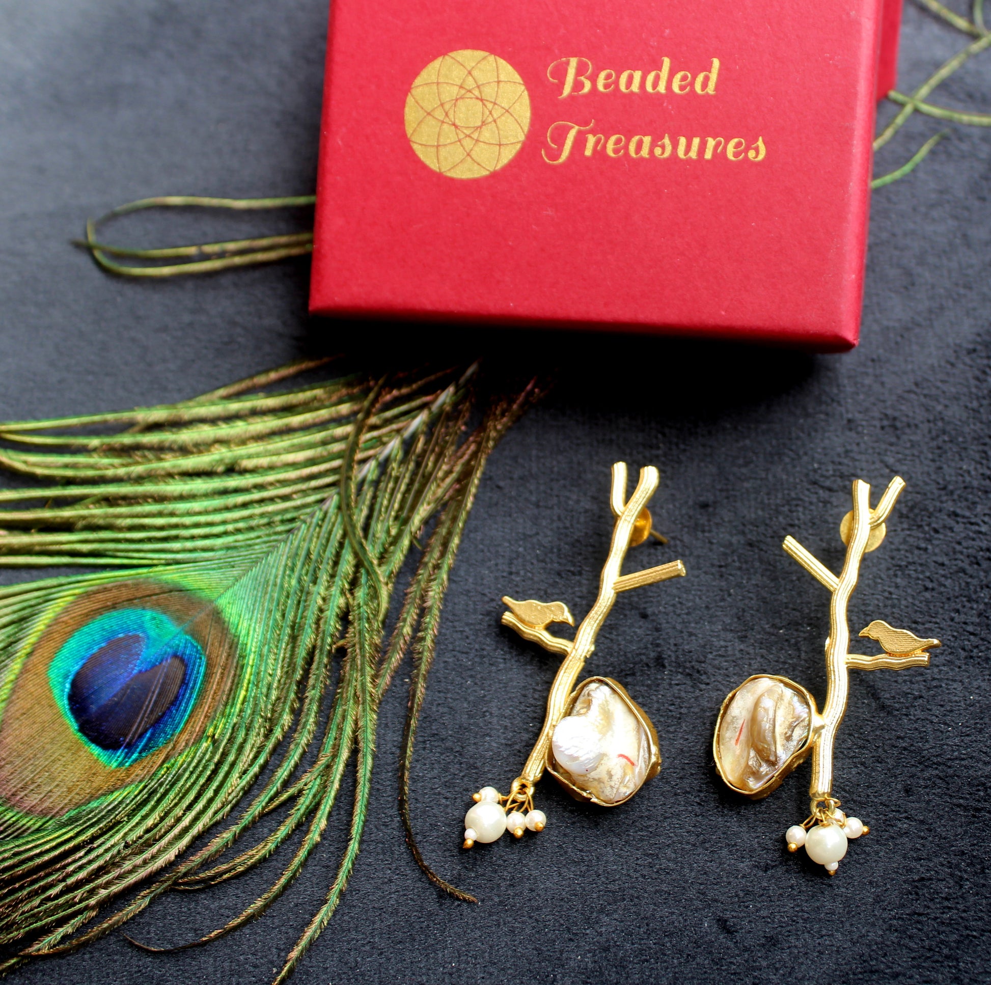 - Unique Bird and Branch Dangler Earrings, handcrafted by Beaded Treasures in Bengaluru.