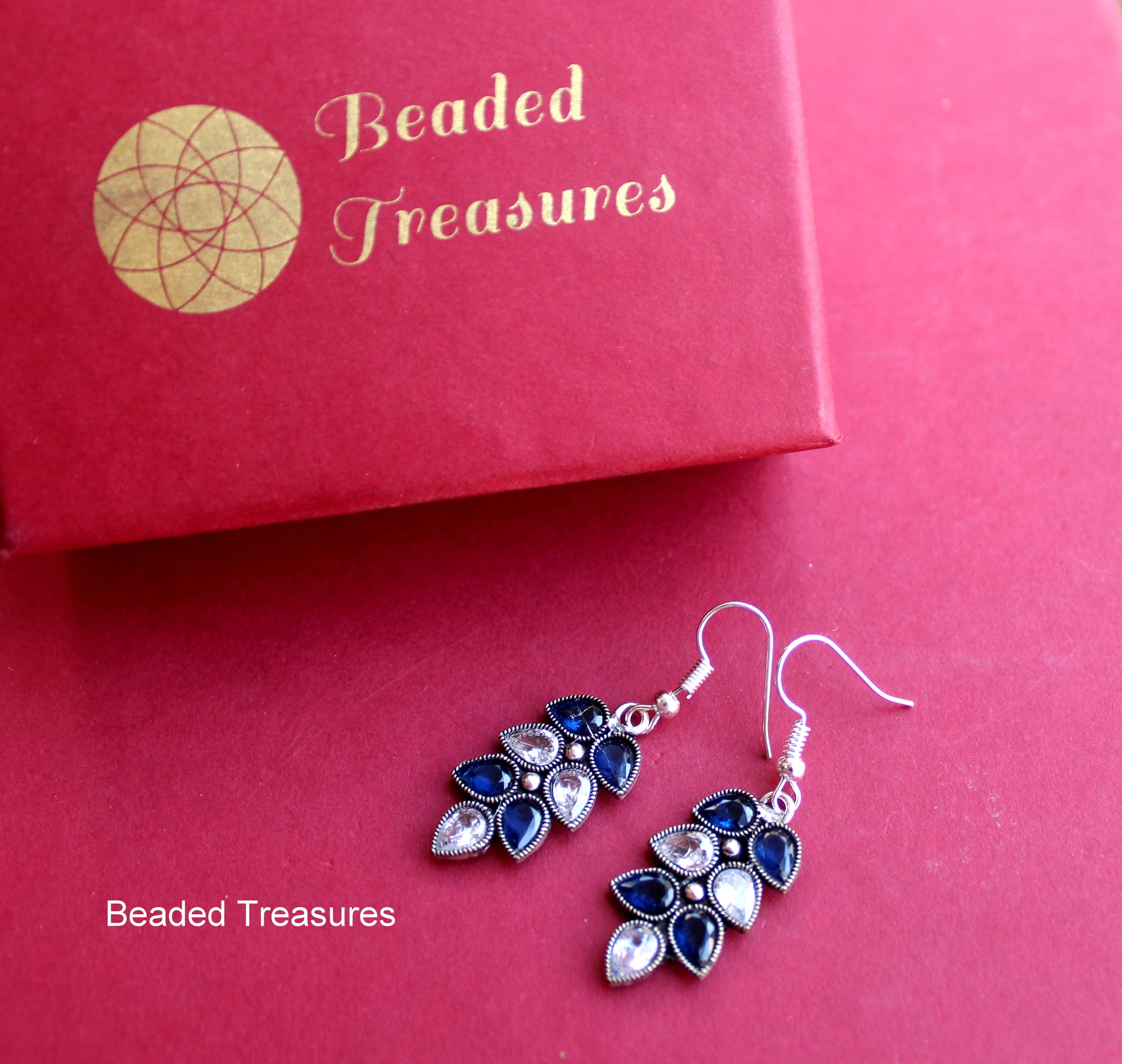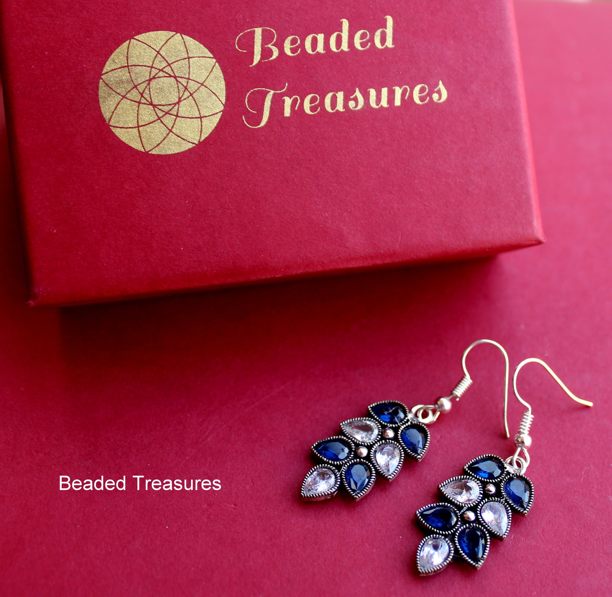- Elegant Blue Tanzanite German Silver Dangle Earrings, handcrafted by Beaded Treasures in Bengaluru.