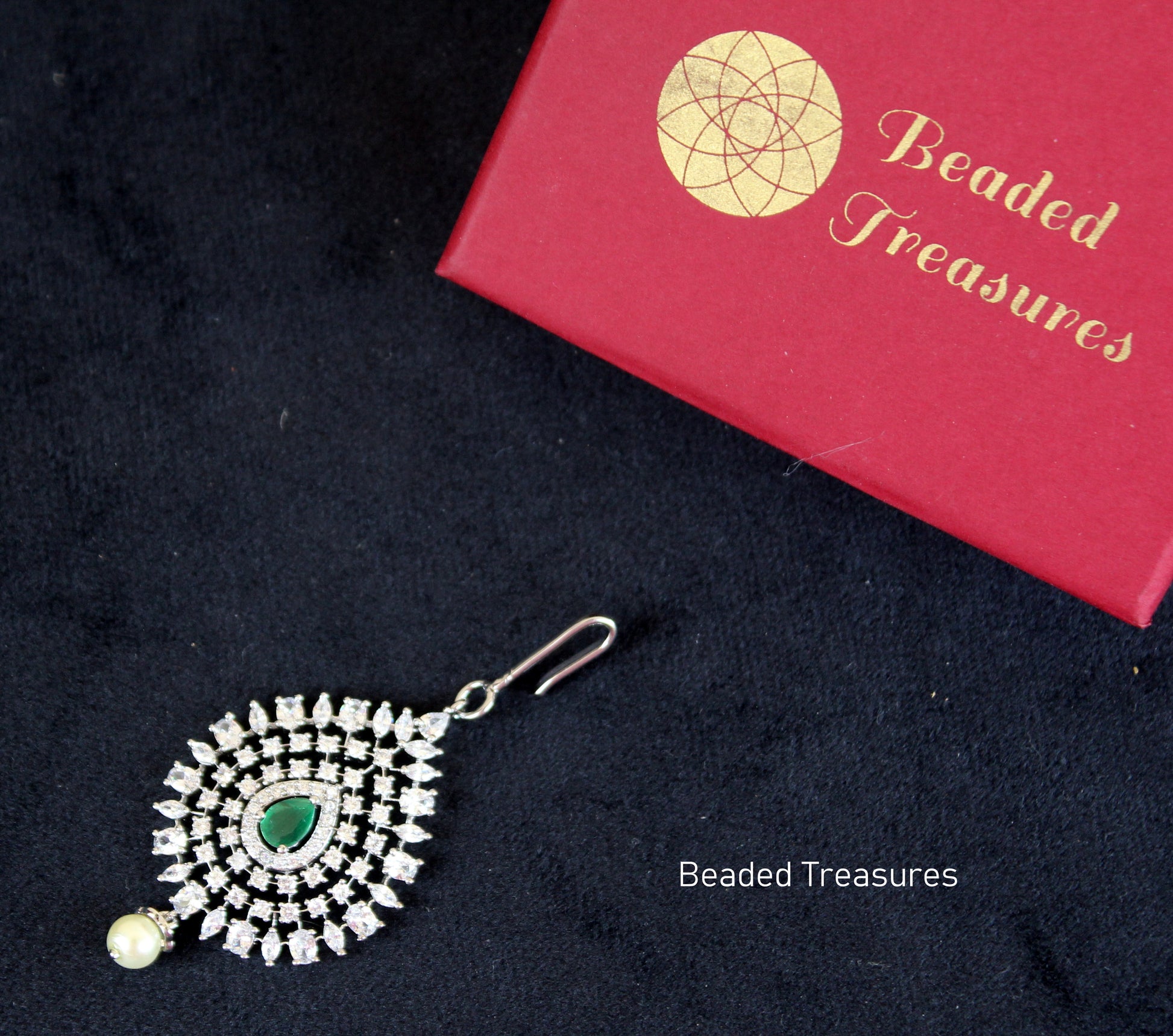 - Elegant Diamond Tikka (MG14), handcrafted by Beaded Treasures in Bengaluru.