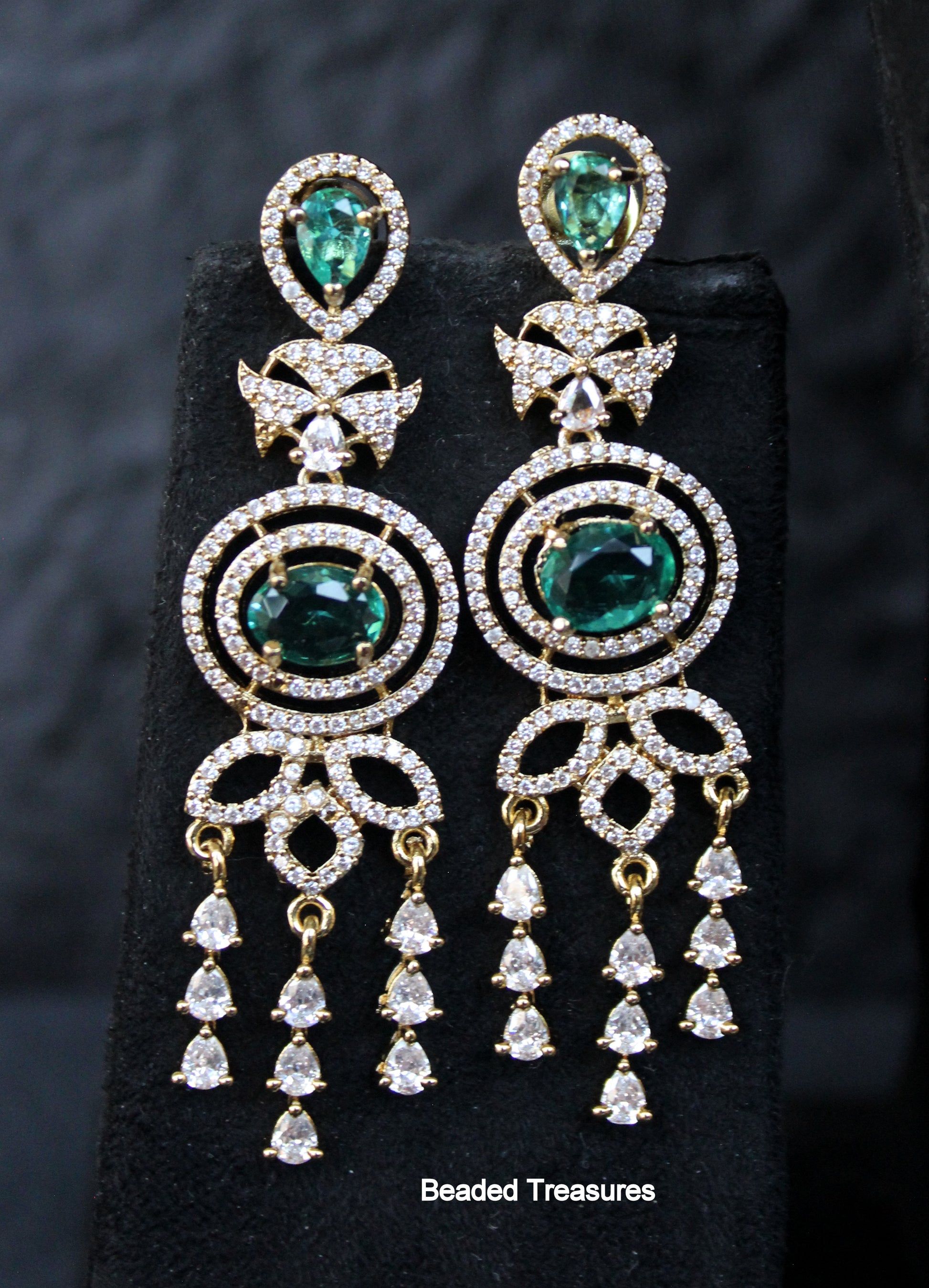- The gold-toned setting enhances the sparkle of the AD stones and the rich color of the emerald green stones, creating a sophisticated and glamorous look.