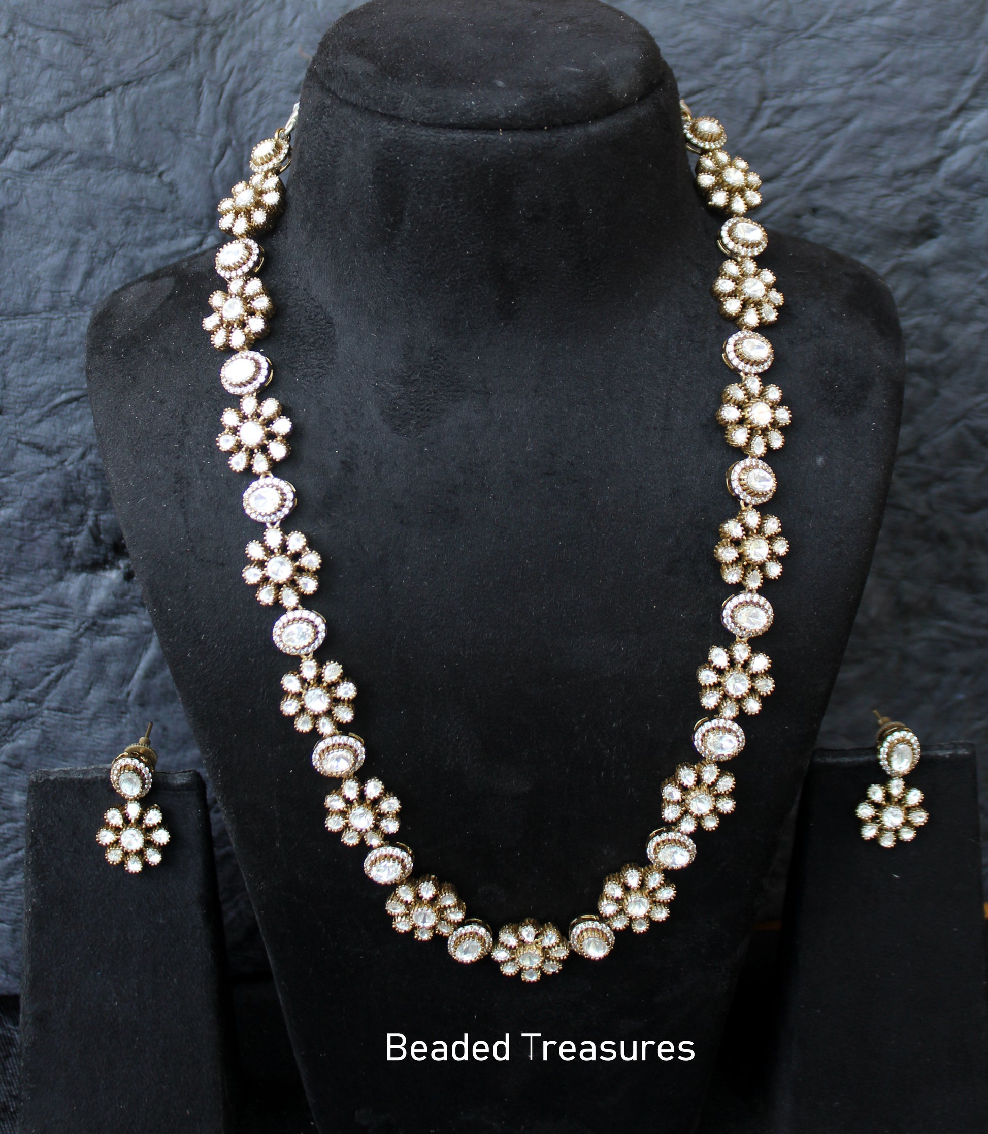 Elegant Moissanite Polki Long Necklace Set - Beaded Treasures