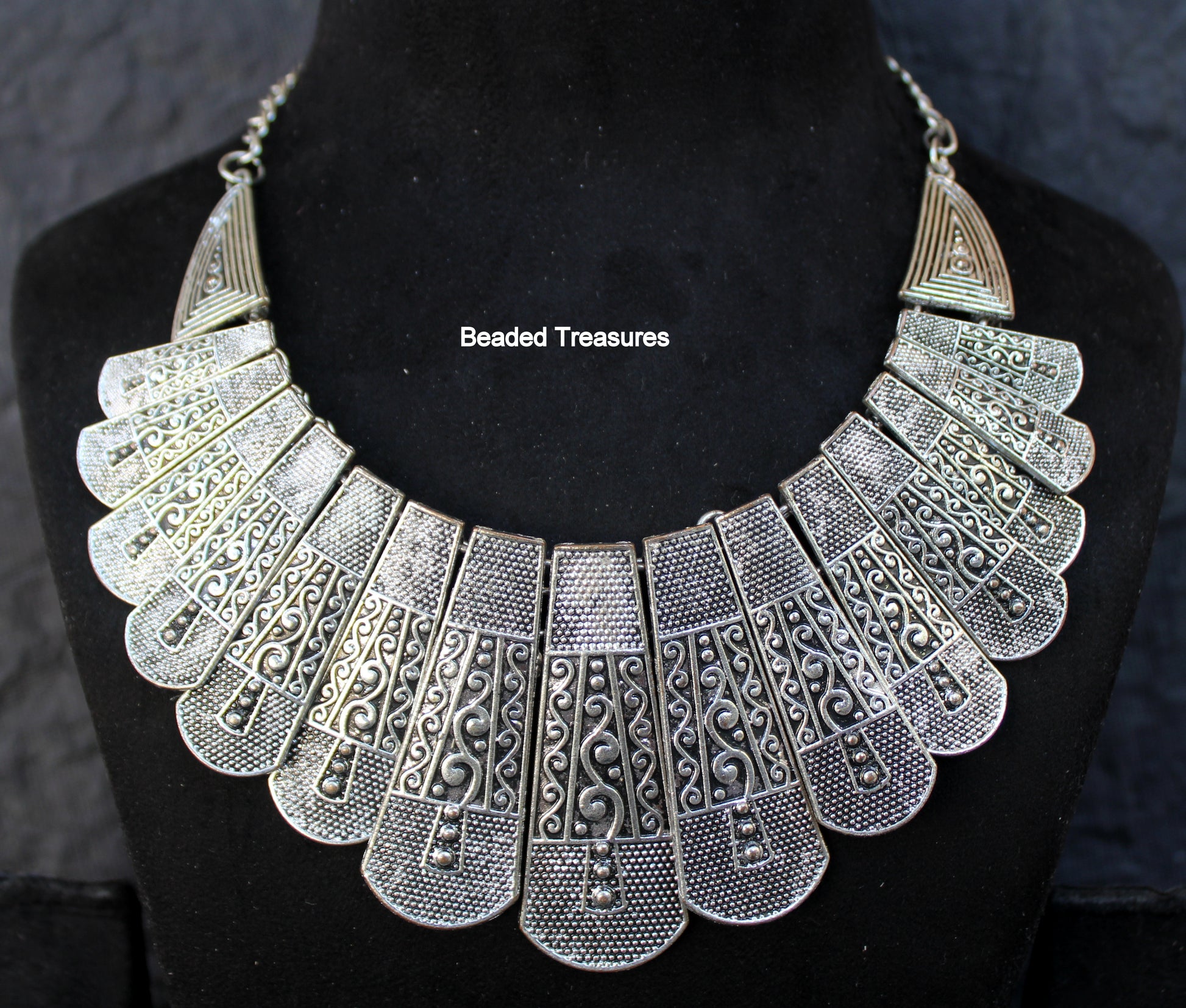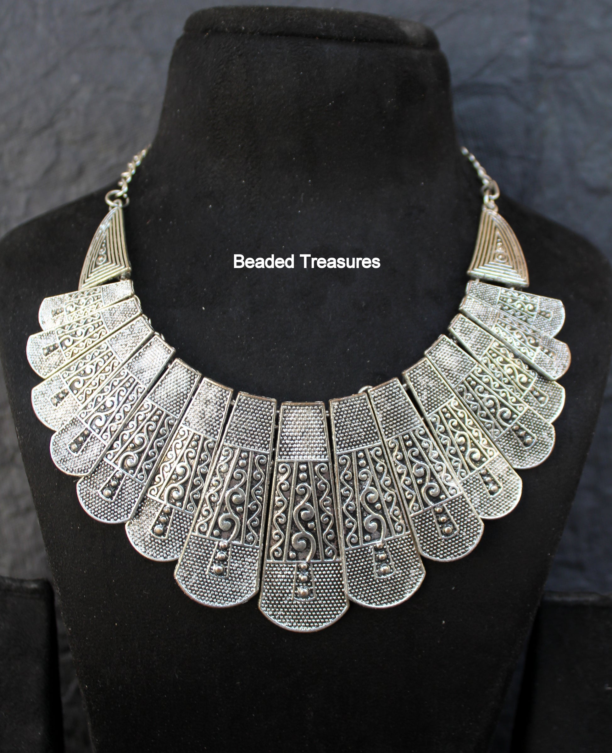Fancy Oxidized German Silver Statement Necklace - Beaded Treasures