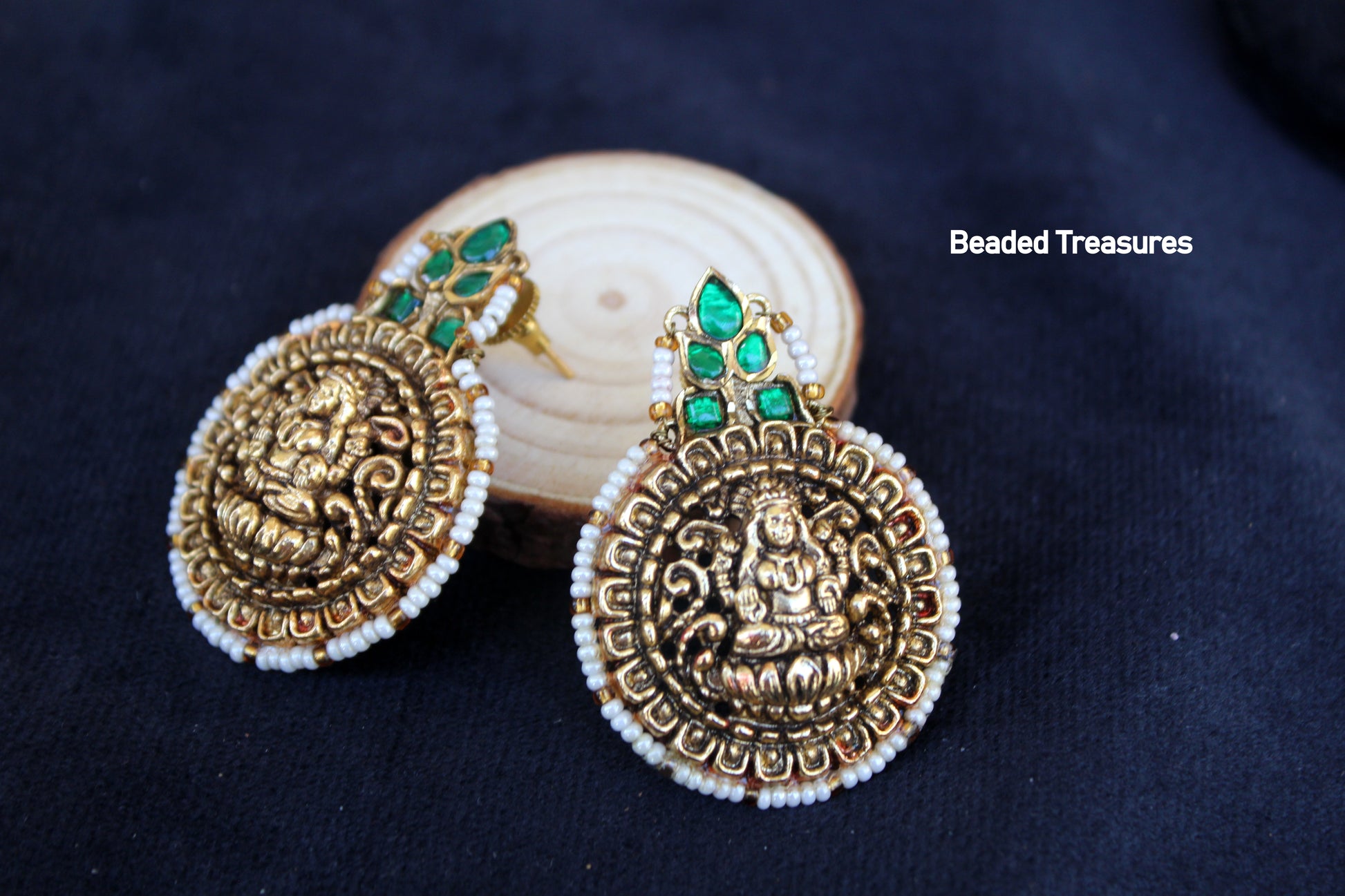 - The earrings showcase traditional South Indian temple jewellery design and spiritual significance.