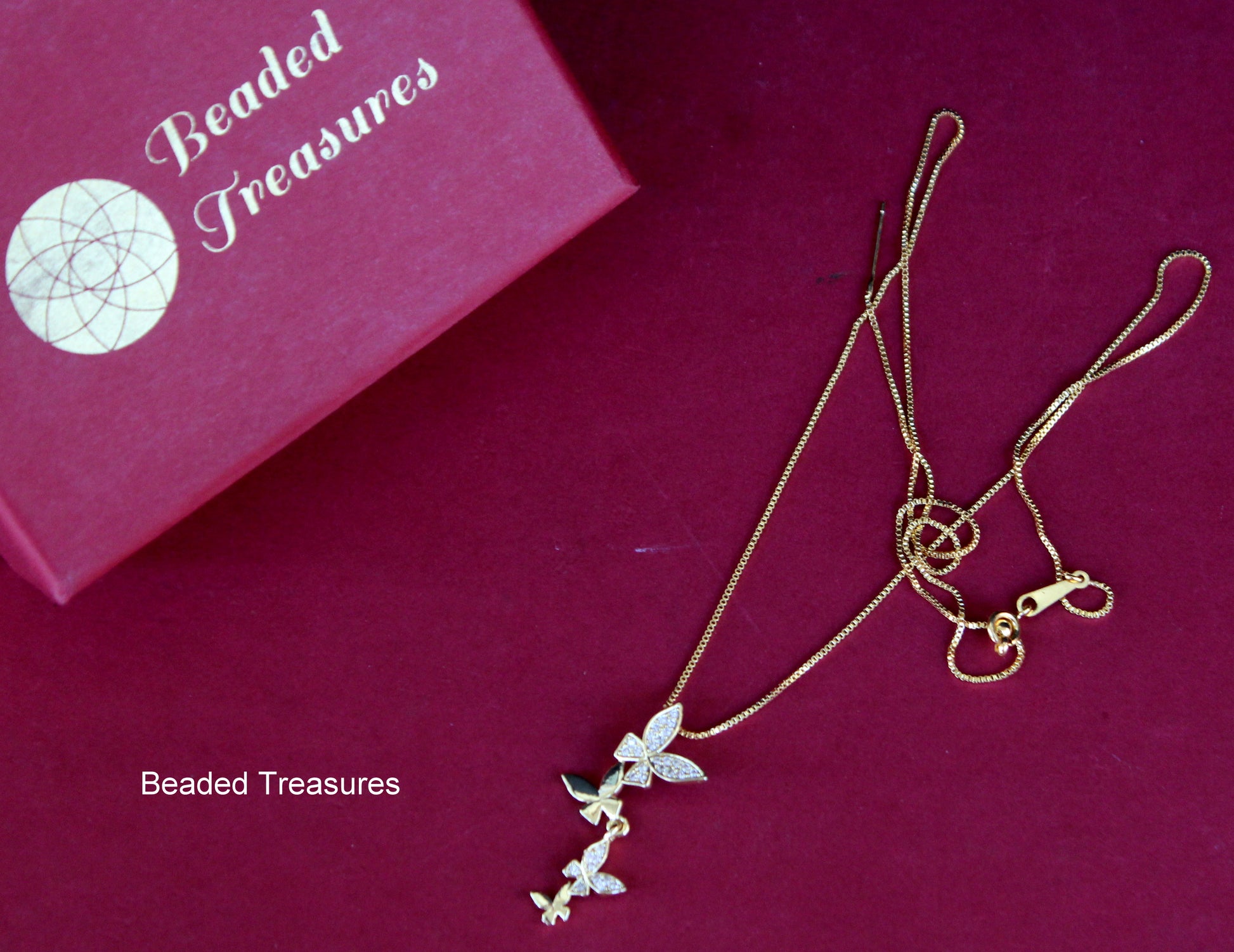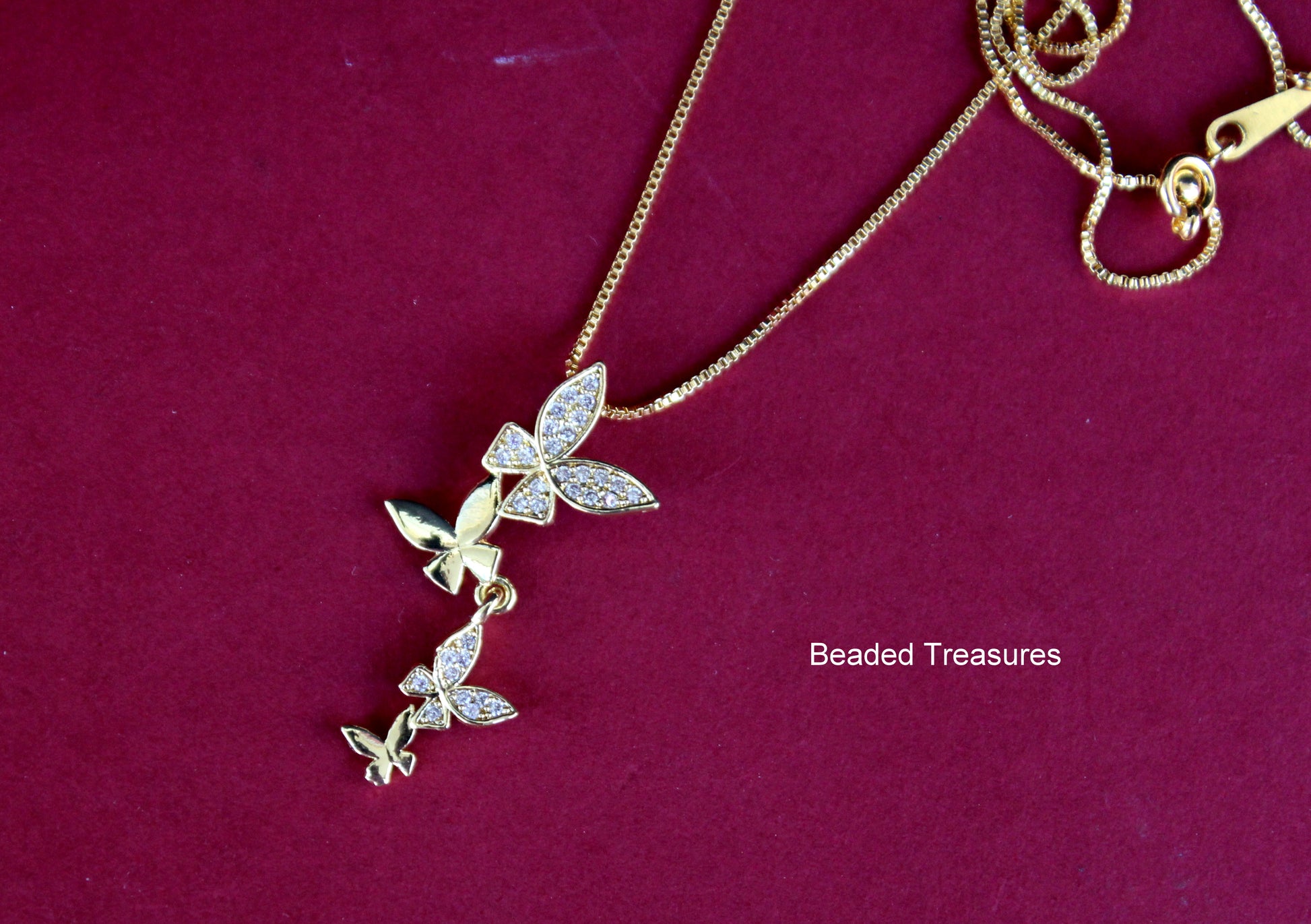 - Delicate Gold-Toned Butterfly Pendant Necklace with Crystal Accents, handcrafted by Beaded Treasures in Bengaluru.