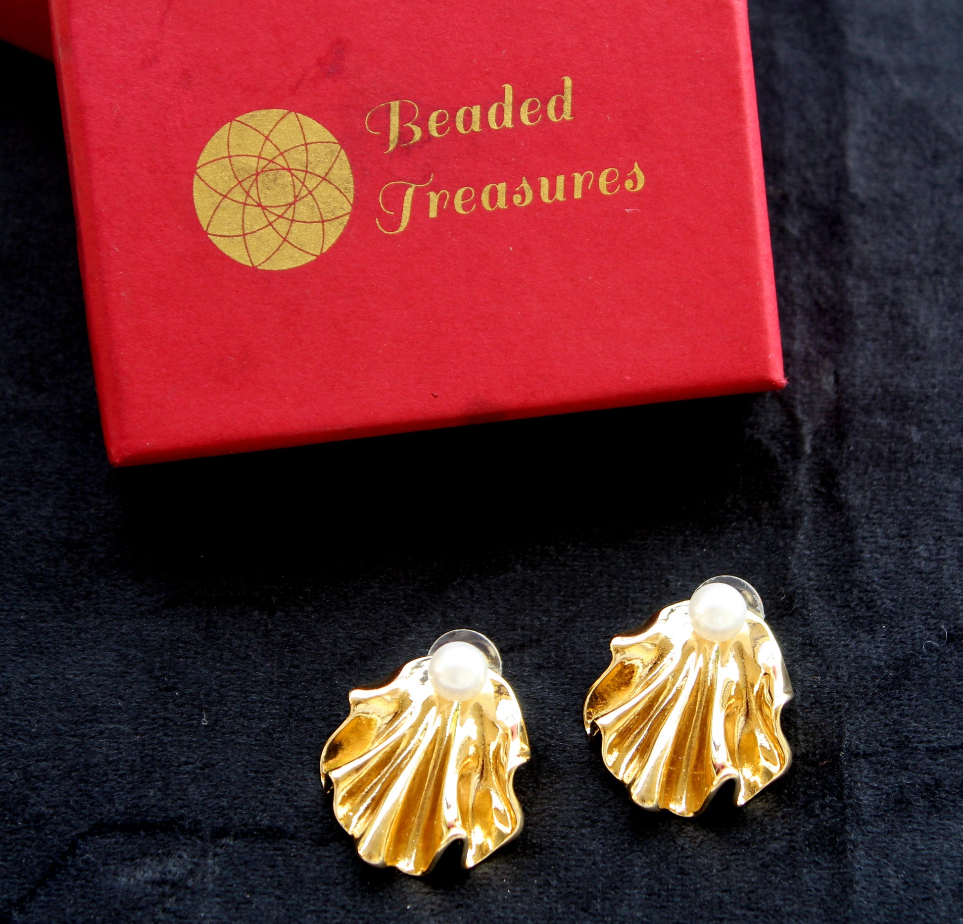 Gold-Toned Shell Earrings with Pearls - Beaded Treasures