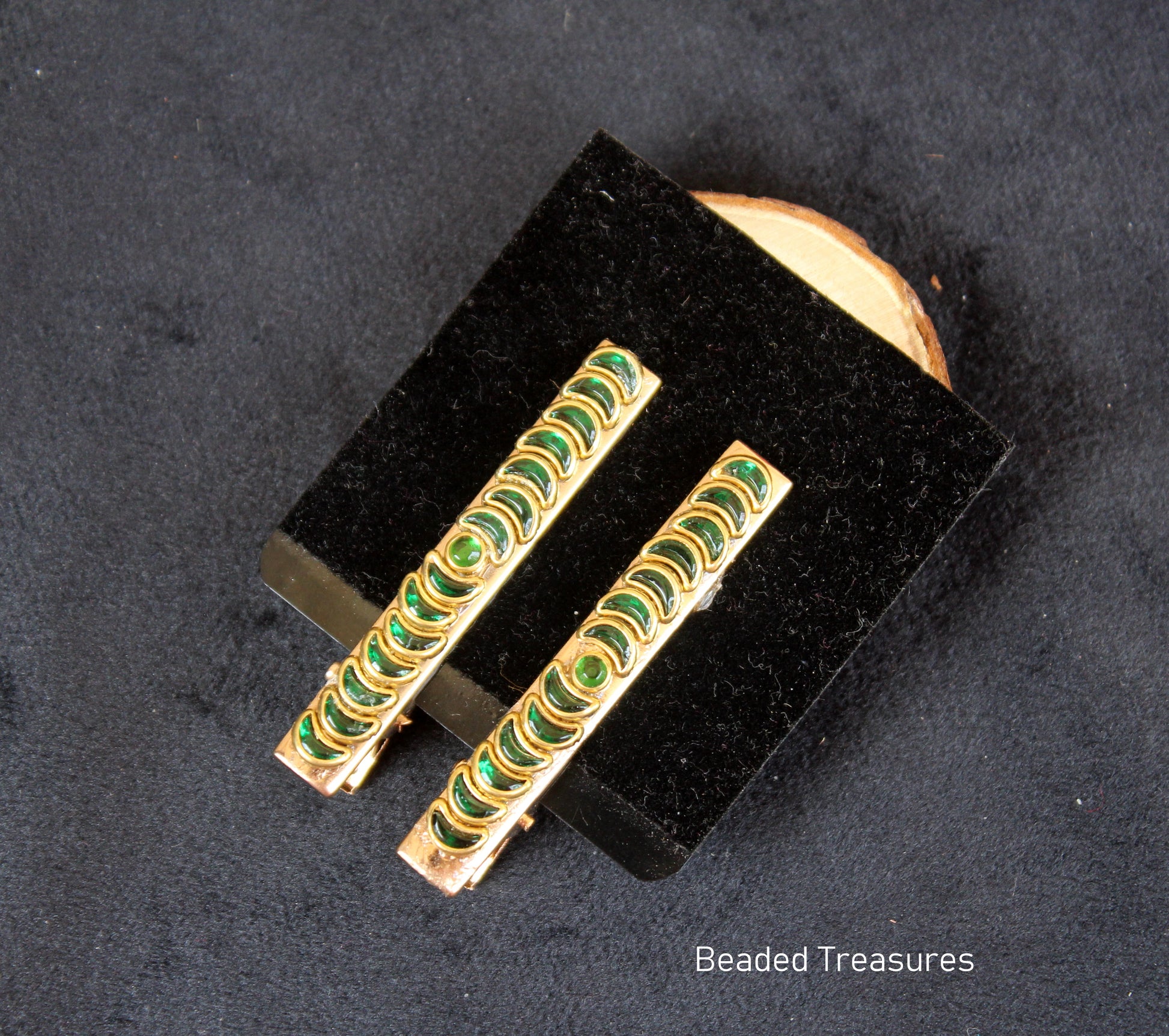 Green Stone Hair Clips with Moon Design (Pair) - Beaded Treasures