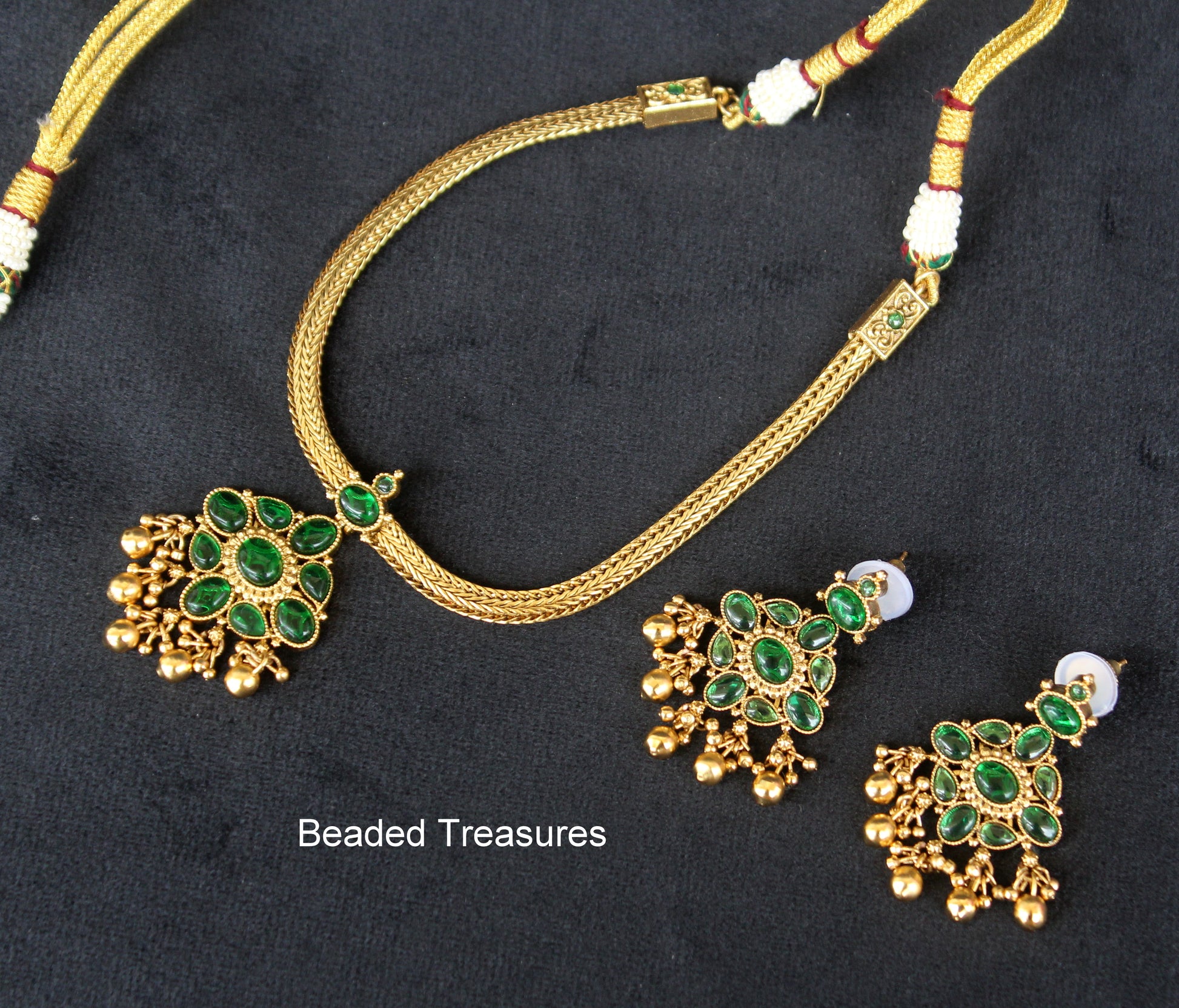 Green Stone Temple Necklace Set - Beaded Treasures Bengaluru