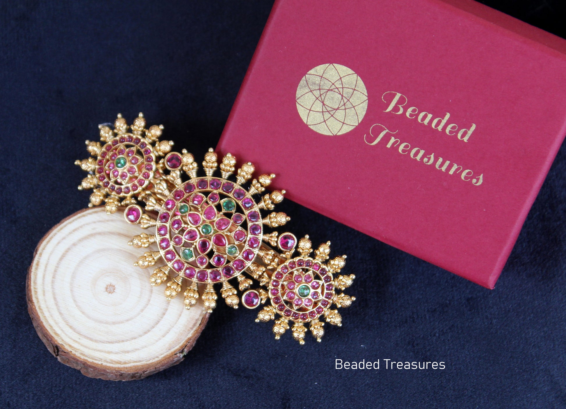 - The clips showcase a blend of traditional South Indian design and contemporary elegance.