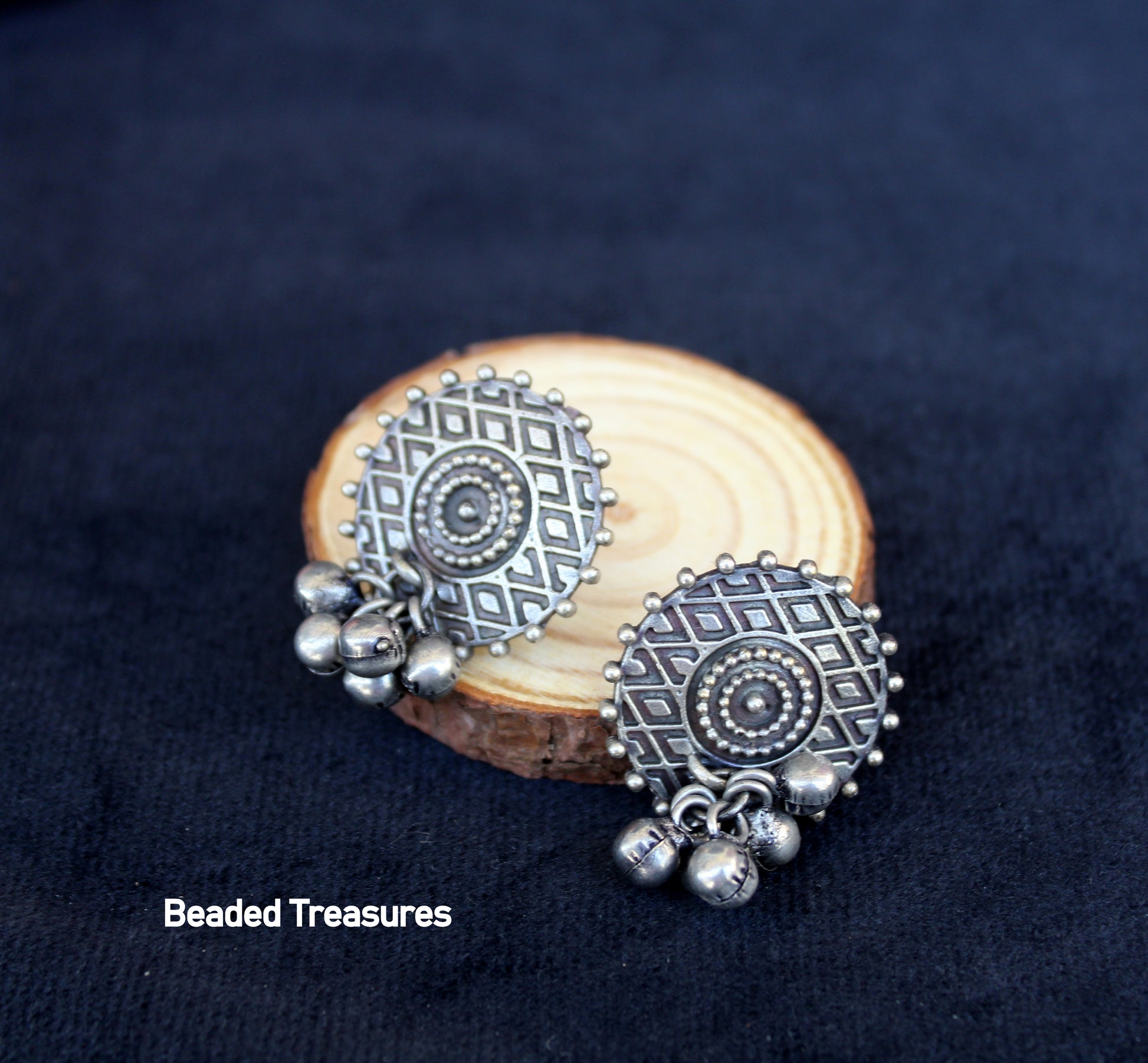 - Unique Mewad Silver Stud Earrings, handcrafted by Beaded Treasures in Bengaluru.