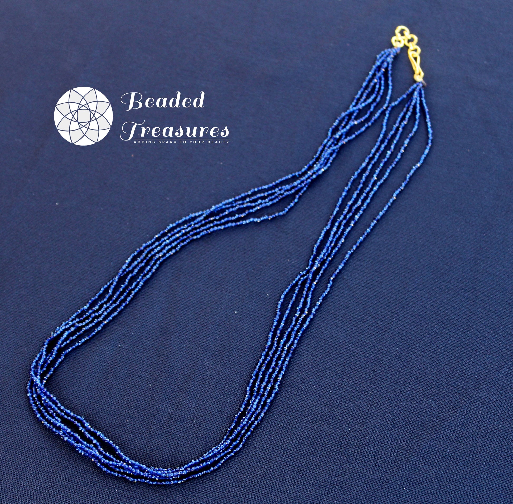 - Elegant Multi-Layered Blue Hydro Crystal Necklace, handcrafted by Beaded Treasures in Bengaluru. (Product Code: HMT-004)