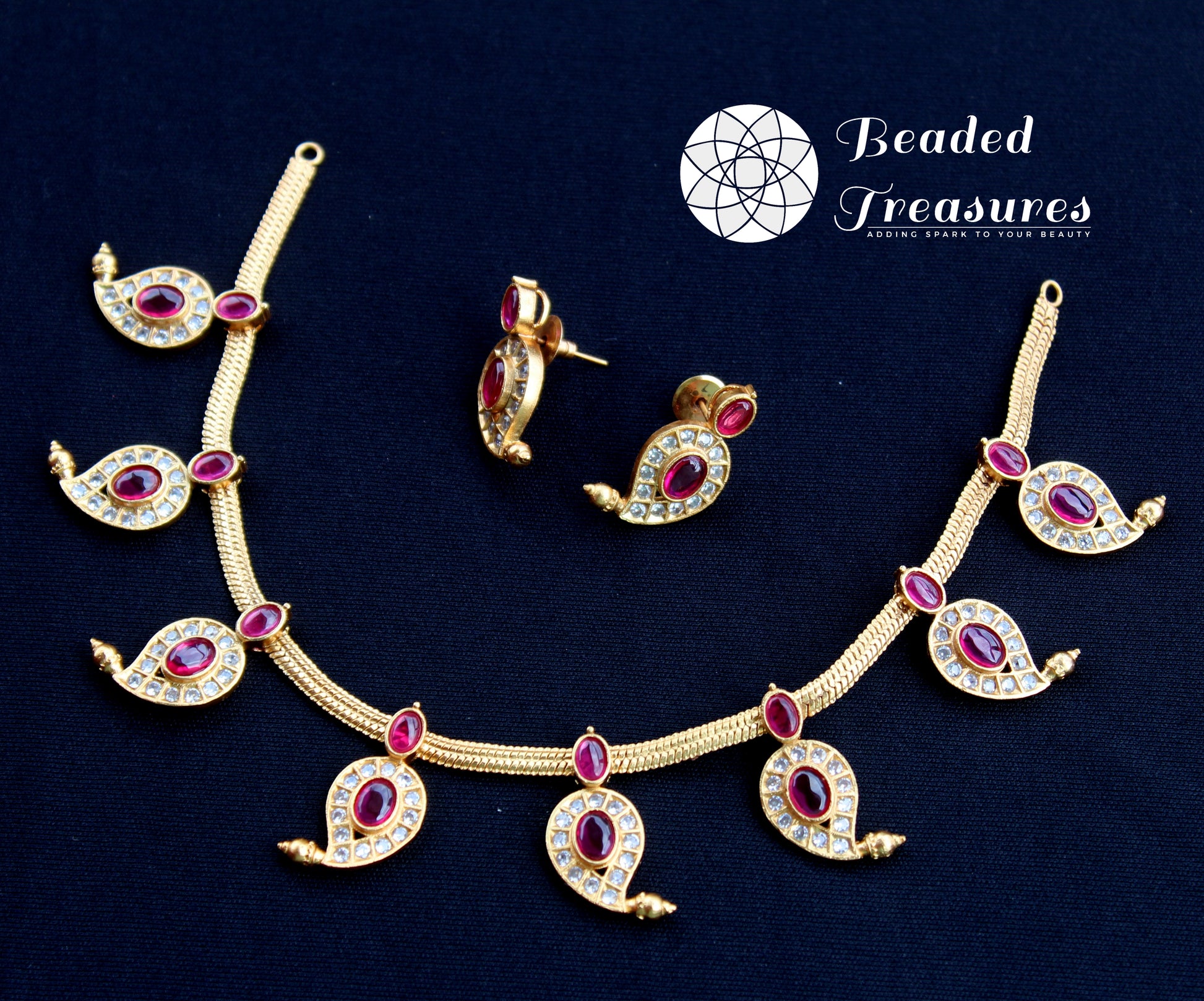 - Elegant Navratan Mango Necklace Set, handcrafted by Beaded Treasures.