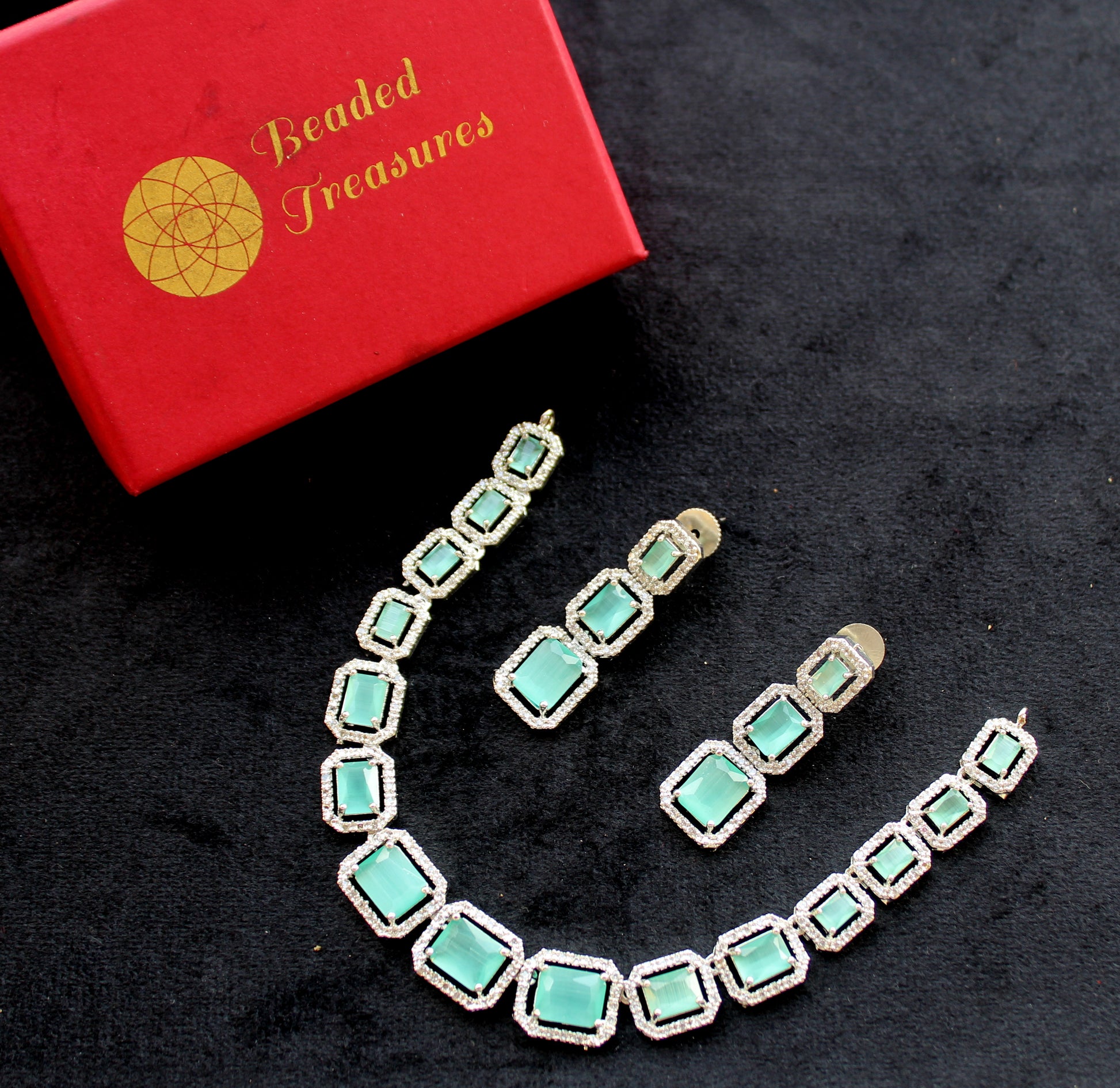 - Features a unique octagonal design with pastel-colored stones and a surrounding border of American Diamonds.