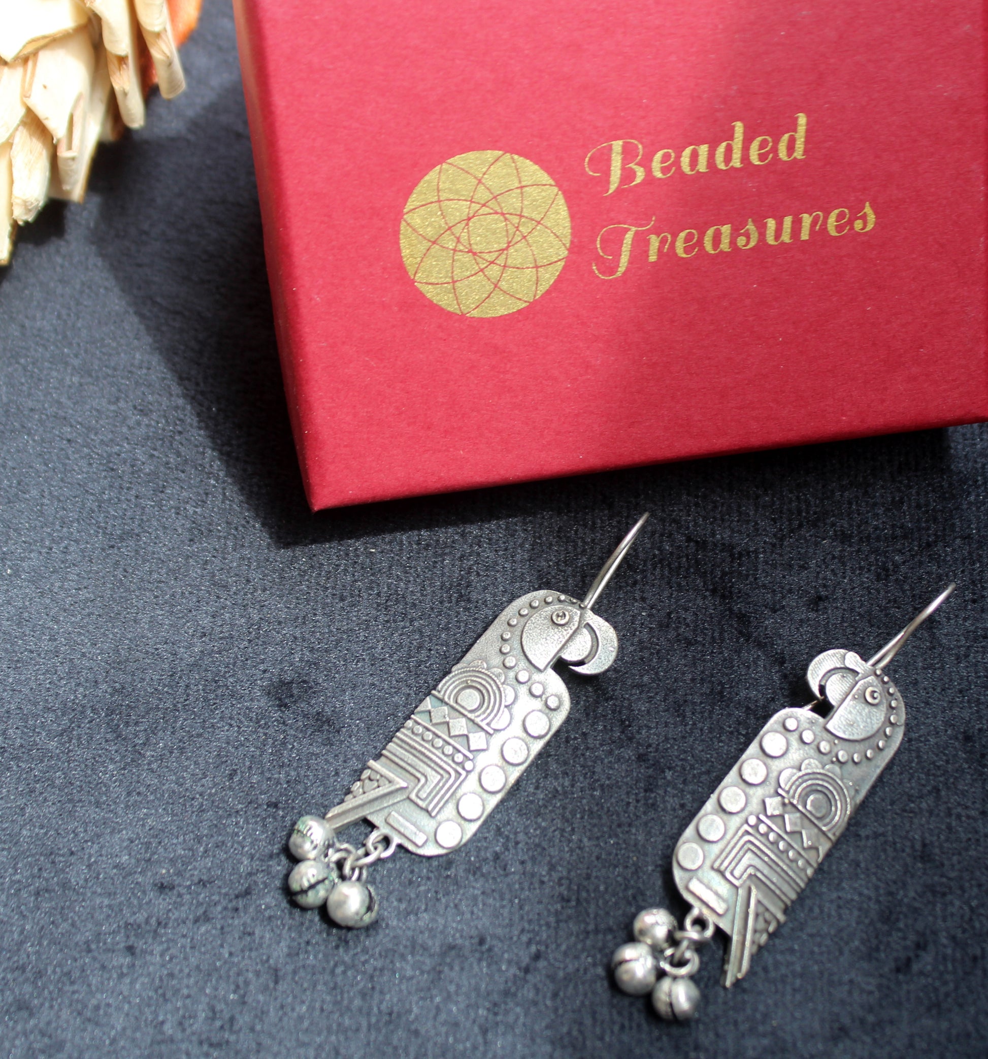 - Unique Oxidized Silver Bird Dangler Earrings, handcrafted by Beaded Treasures in Bengaluru.