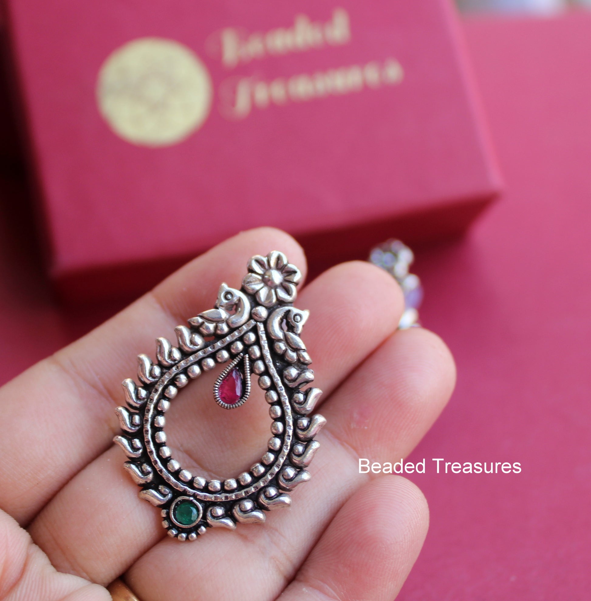 - The earrings showcase an oxidized silver finish, giving them an antique and rustic look.