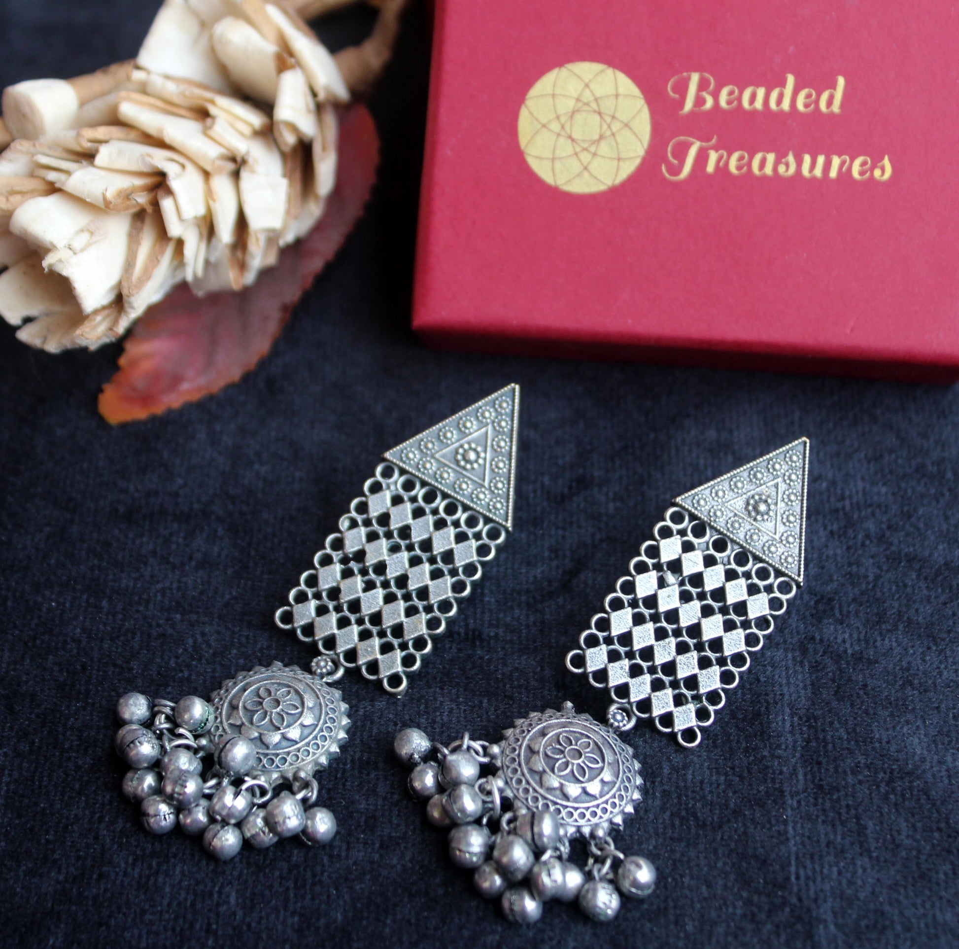 - Unique Oxidized Silver Papeeha Earrings, handcrafted by Beaded Treasures in Bengaluru.