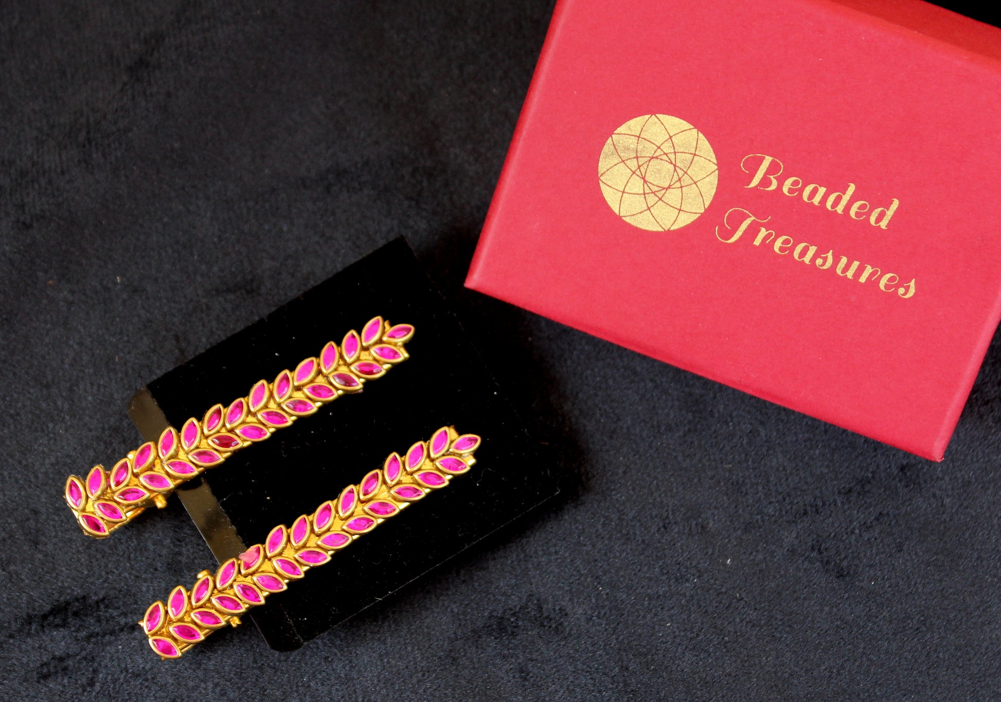 - Stylish Pink Stone Hair Clips, handcrafted by Beaded Treasures in Bengaluru.