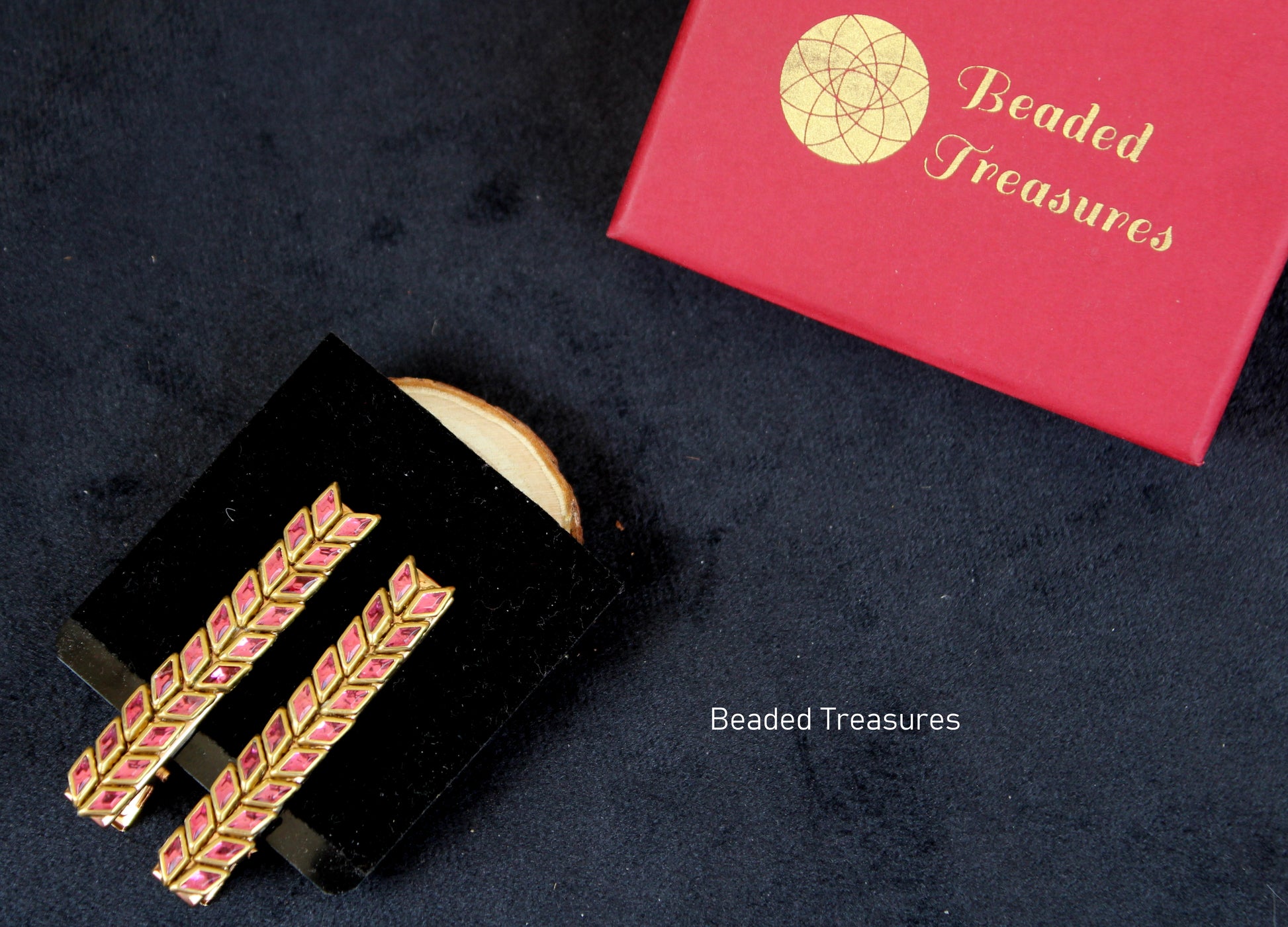 - Stylish Pink Stone Hair Clips with Leaf Design, handcrafted by Beaded Treasures in Bengaluru.