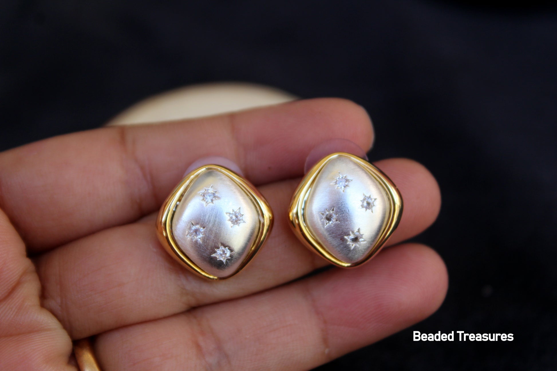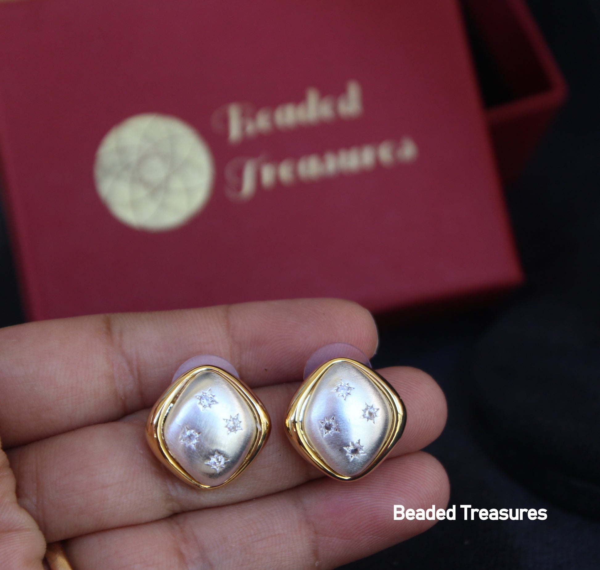 - Elegant Rhombus Mother of Pearl Stud Earrings with CZ Accents, handcrafted by Beaded Treasures in Bengaluru.