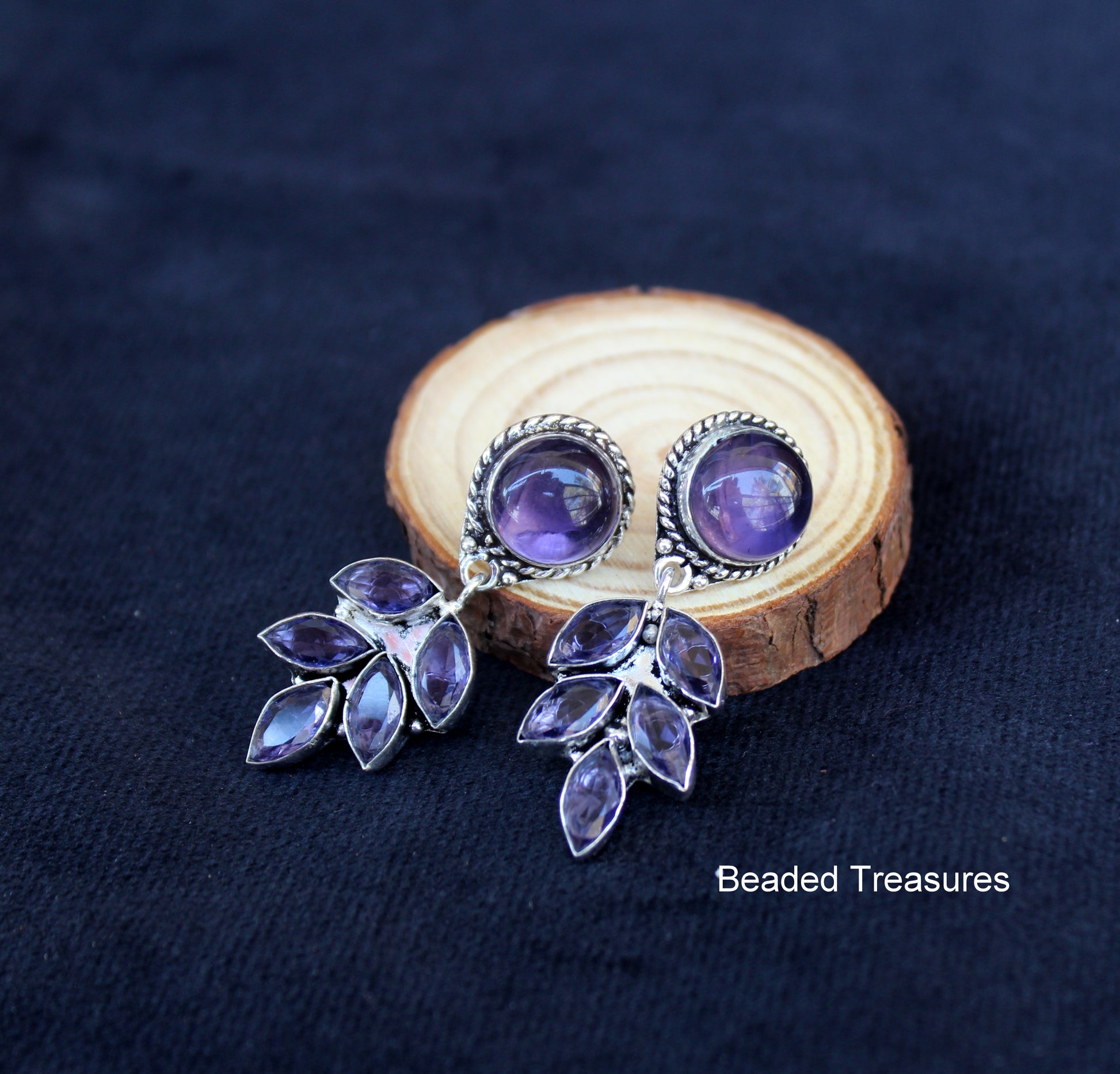 - Elegant Silver Tone Amethyst Earrings, handcrafted by Beaded Treasures in Bengaluru.
