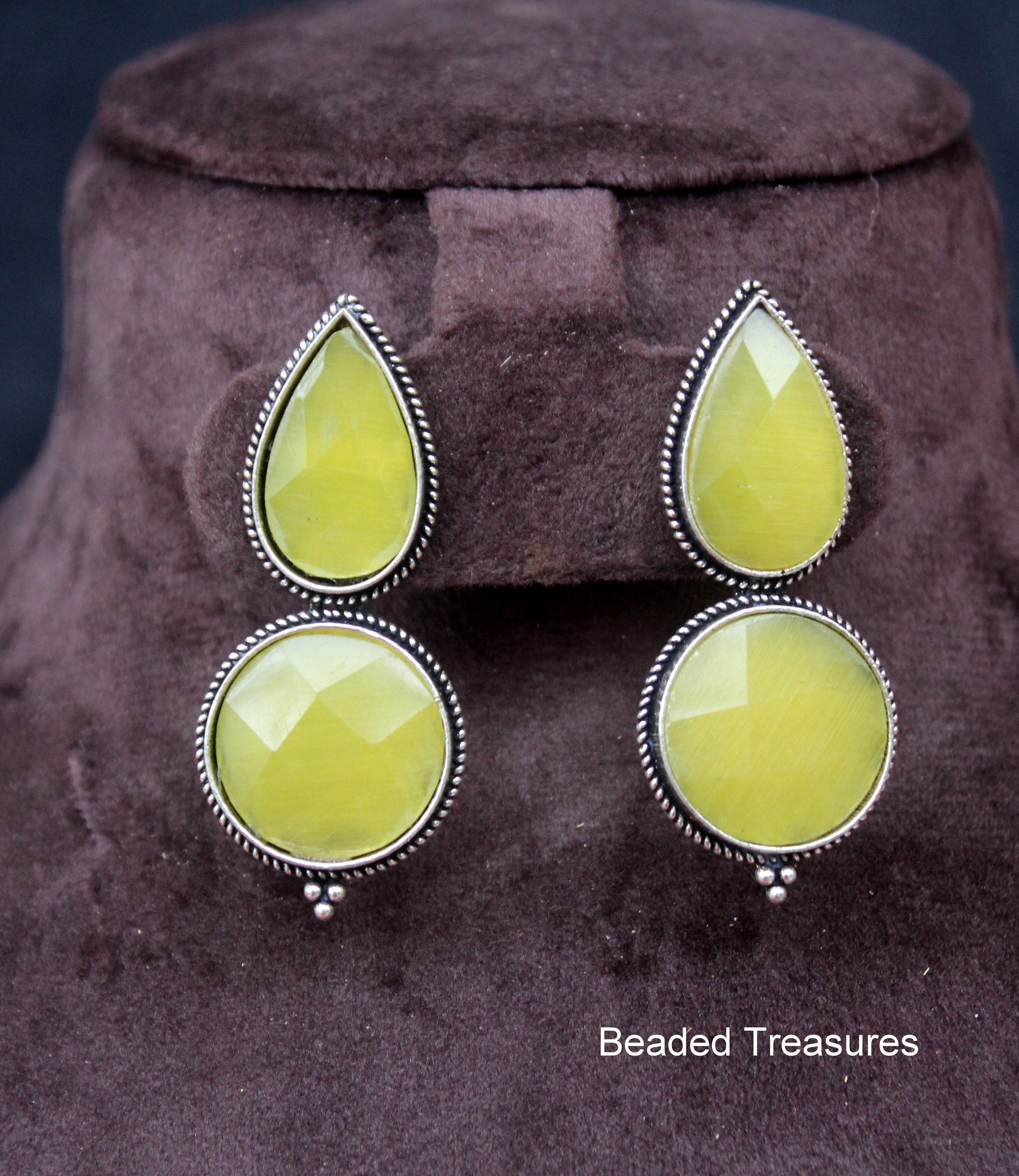- Elegant Vintage Style Earrings featuring beautiful Lemon Prehnite gemstones, handcrafted by Beaded Treasures in Bengaluru.